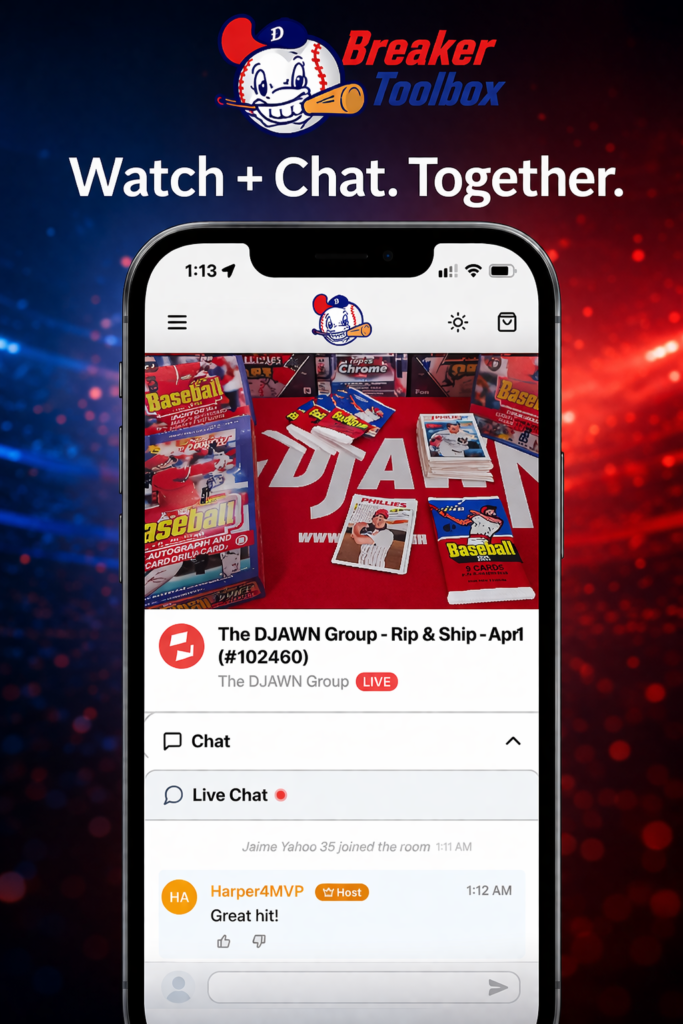 Breaker Toolbox continues to support livestreaming directly on the platform, while also allowing breakers to promote and sell breaks across multiple platforms, including: